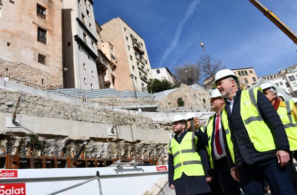 En este contexto, el vicepresidente del Gobierno regional, José Luis Martínez Guijarro, y el consejero de Fomento, Nacho Hernando, visitaron las obras de la conexión accesible al Casco Histórico de Cuenca, un proyecto financiado a través de los fondos ‘Next Generation’. Les acompañaron el alcalde de Cuenca, Darío Dolz, y otros funcionarios públicos como la directora general de Transportes y Movilidad, Lucía Balmaseda, y la subdelegada del Gobierno en Cuenca, María Luz Fernández.