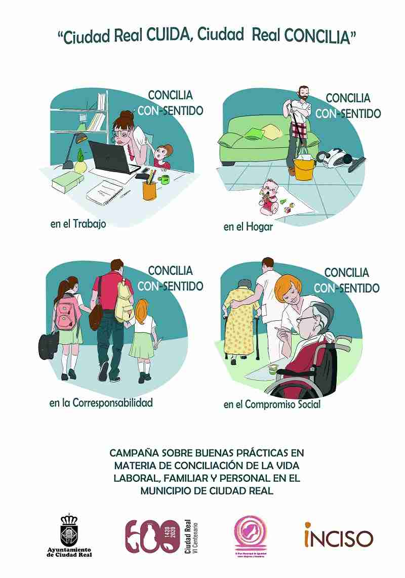 El Ayuntamiento de Ciudad Real e Inciso Integración ponen en marcha desde hoy una campaña sobre buenas prácticas en materia de conciliación de la vida laboral, familiar y personal bajo el lema “Ciudad Real te cuida. Ciudad Real concilia”. Se trata de una campaña de sensibilización en materia de conciliación de la vida personal, familiar y laboral considerándolo un derecho de la ciudadanía y una circunstancia fundamental para garantizar la igualdad entre mujeres y hombres.