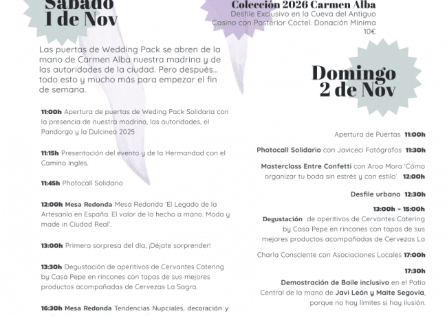 En un esfuerzo conjunto por fusionar tradición, cultura y compromiso social, Ciudad Real acogerá los días 1 y 2 de noviembre la innovadora iniciativa del Wedding Pack Solidario, un evento que promete transformar la percepción de las celebraciones nupciales y convertirlas en una oportunidad para apoyar a las asociaciones sociales de la ciudad.