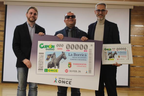 Torrenueva (Ciudad Real), 29 de enero de 2026.- El delegado provincial de Economía, Empresas y Empleo, Miguel Angel Díaz Brazales, ha agradecido a la ONCE la edición especial que dedicará a la fiesta de La Borricá de Torrenueva en su cupón del próximo 10 de febrero, ya que “nos ayuda tanto al Gobierno de Castilla-La Mancha como al ayuntamiento de Torrenueva a promocionar las tradiciones y festividades de la región”.