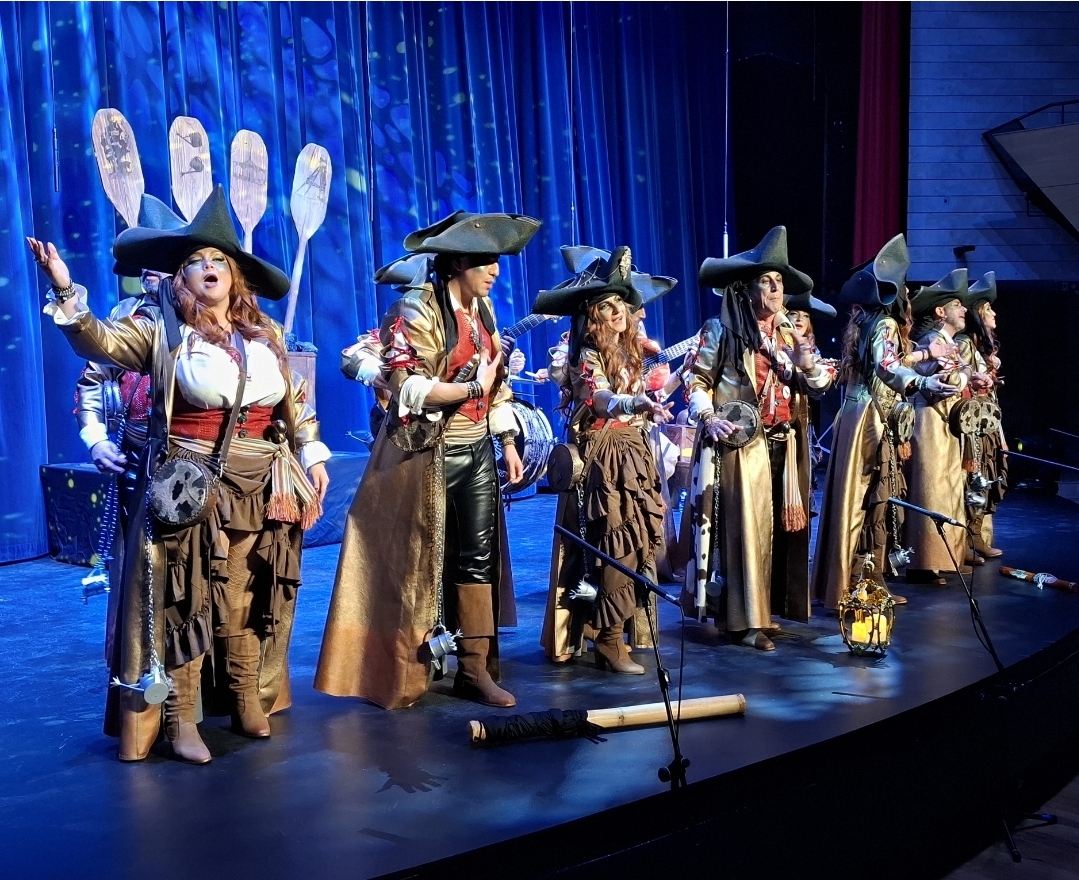 Una muestra que fue abierta por los piratas de «La reina del mar» de «Una comparsa con Áje», con la mascarona 2026, Andrea Portero, entre sus desgarradoras voces llenas de sentimiento y pasión.