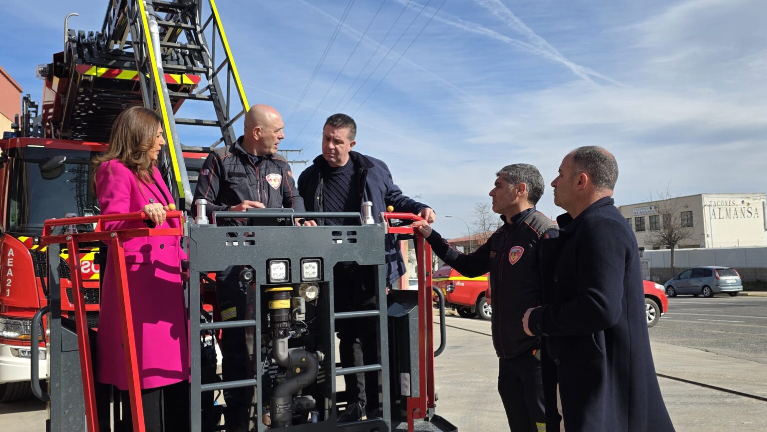 En una significativa mejora para los servicios de prevención y extinción de incendios, la Diputación de Albacete ha presentado las dos nuevas autoescaleras automáticas que se sumarán al Servicio Especial de Prevención y Extinción de Incendios (SEPEI). La presentación tuvo lugar en Almansa, el 18 de febrero de 2026, presidida por Santi Cabañero, presidente provincial, quien estuvo acompañado de la alcaldesa de Almansa y diputada provincial de Igualdad, Pilar Callado; José Antonio Gómez, diputado responsable del Servicio; y el jefe del SEPEI, Francisco Ovidio García Ríos, así como otros bomberos del cuerpo provincial.