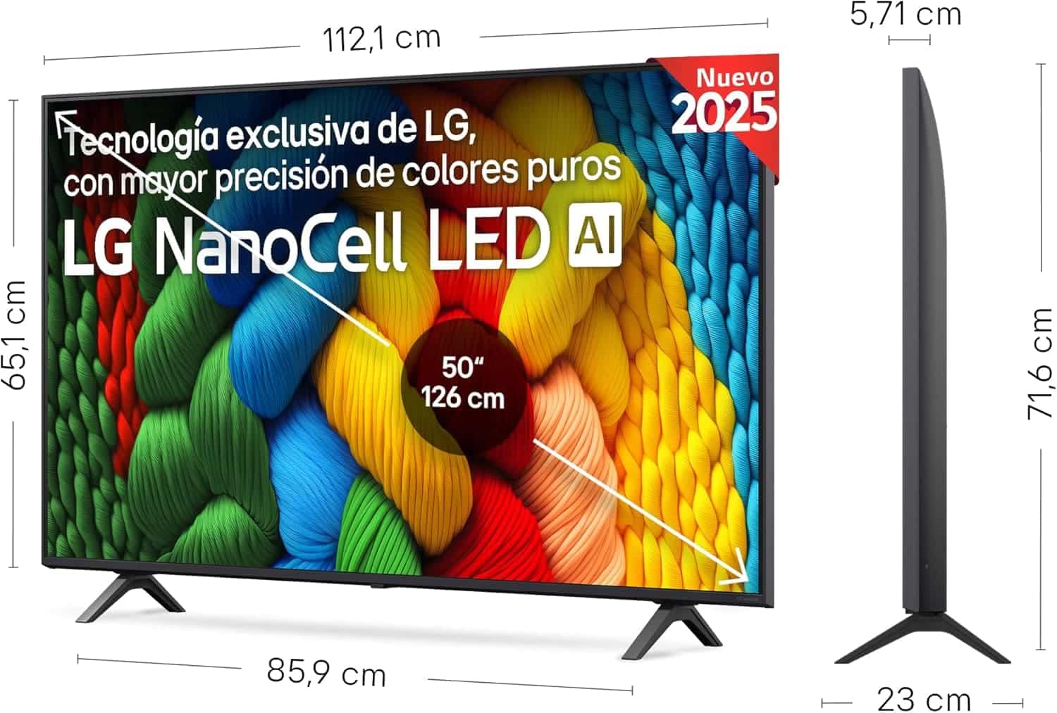 Disponible en Amazon, este televisor de 50 pulgadas combina tecnología NanoCell, un procesador inteligente de última generación y funciones de conectividad avanzadas, todo ello con un diseño elegante que se integra perfectamente en cualquier espacio.
