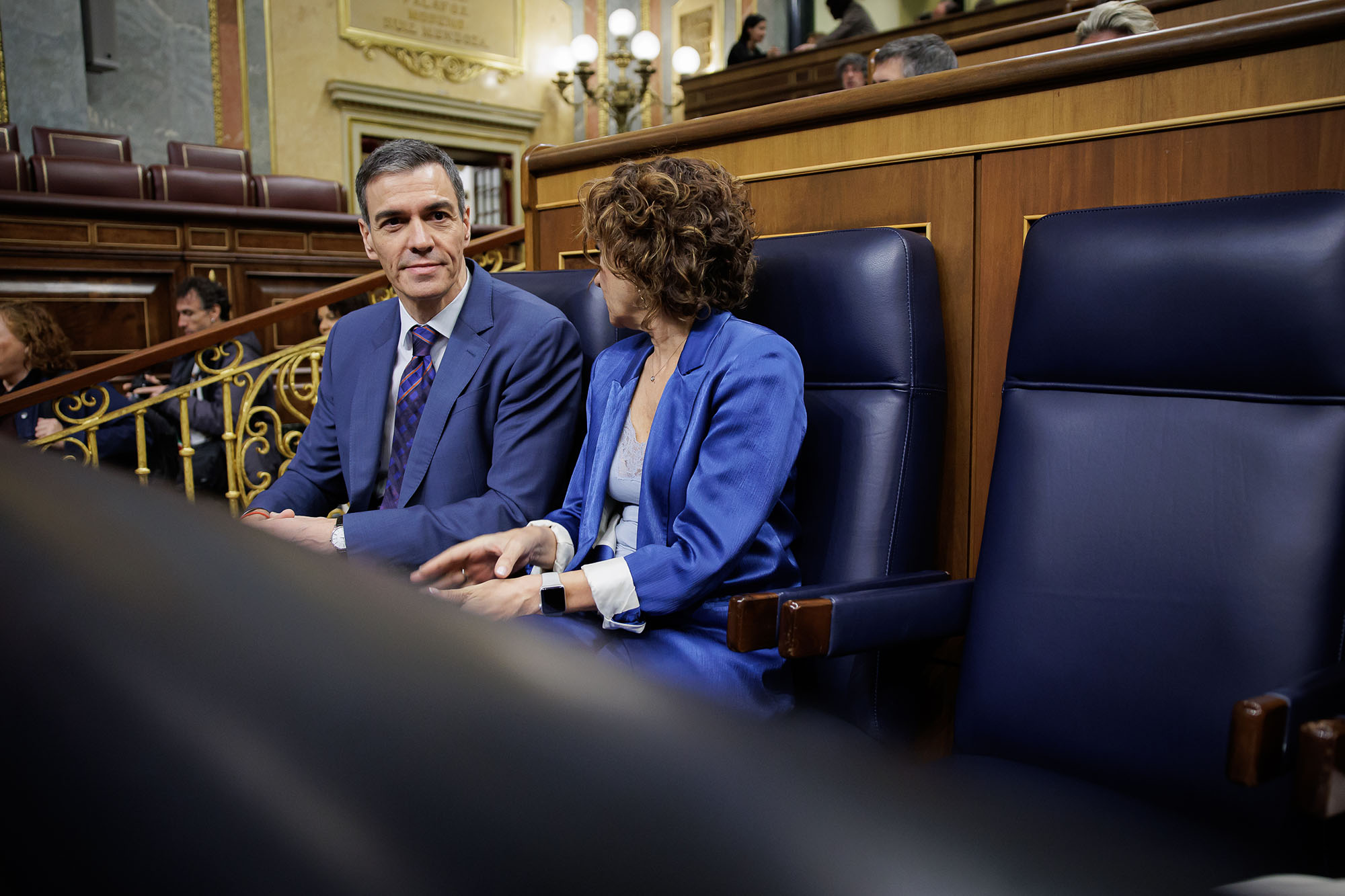 El presidente del Gobierno, Pedro Sánchez, junto a la vicepresidenta primera, María Jesús Montero. | Pool Congreso