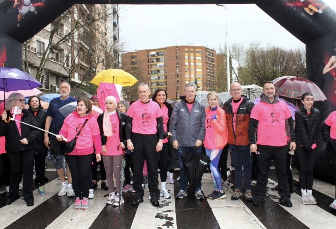 Bajo paraguas han caminado y han trotado desde el Paseo de San Gregorio por diversas calles para recordar un día de lucha por la igualdad y de reivindicación en una actividad organizada por la concejalía de igualdad en colaboración del Patronato Municipal de Deportes.