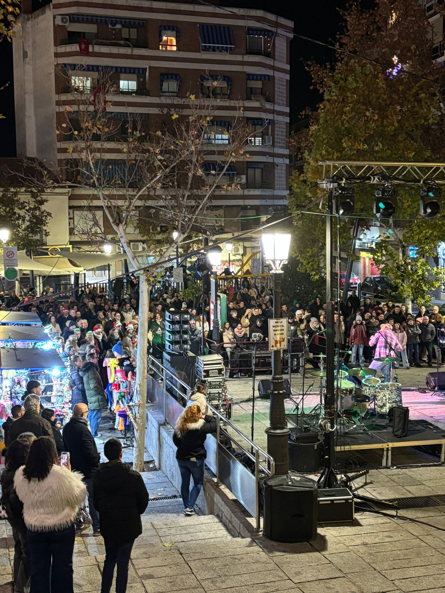 La alegría y el buen humor, del humorista José Boto que durante una hora llenó de risas la plaza del Ayuntamiento preparó con la mejor de las maneras posible al público que después bailó y cantó las canciones versionadas por la banda de Frank Hervás. Previamente sobre una pantalla se hizo la cuenta atrás con montaje de carrillón incluido para recibir en un guiño con más de 24 horas de antelación al nuevo año que estamos a punto de estrenar.