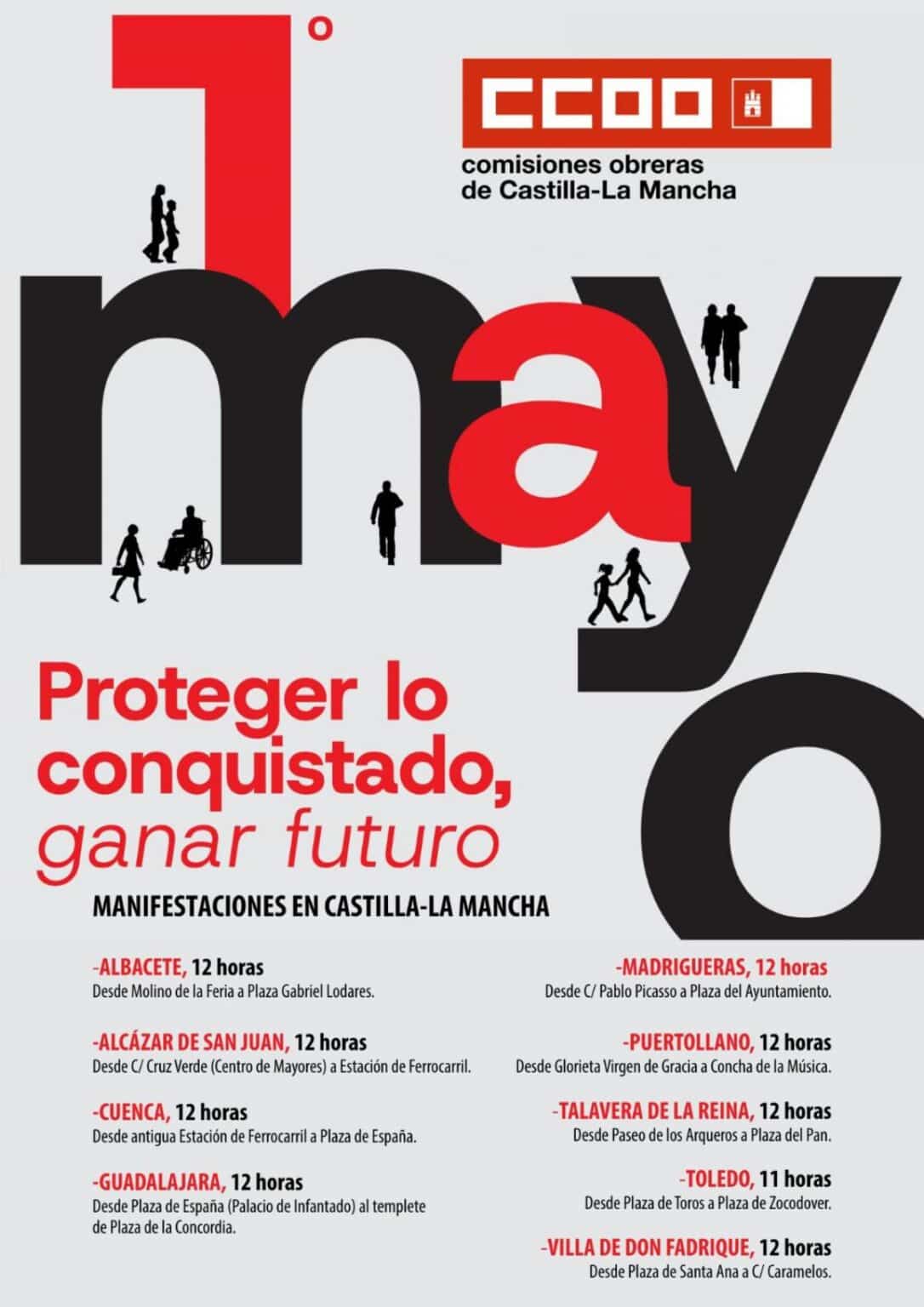 Los sindicatos de Castilla-La Mancha, Comisiones Obreras y UGT, se preparan para las movilizaciones del Primero de Mayo con el lema «Proteger lo conquistado, ganar futuro». El llamado se dirige tanto a las personas trabajadoras como a la ciudadanía en general, instando a una participación masiva en las manifestaciones previstas para la próxima semana en la región. El objetivo de estas movilizaciones es la defensa de los derechos sociales y laborales, así como el apoyo al proyecto europeo concebido como pilar de democracia social, convivencia y progreso.