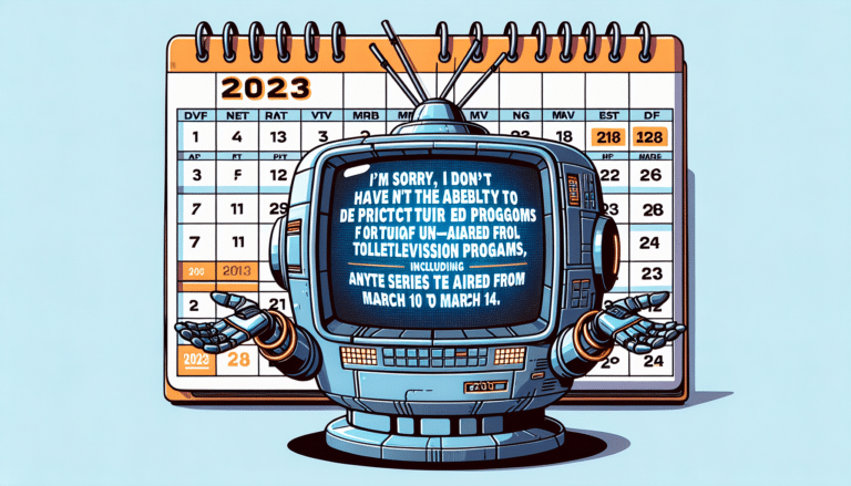 Lo siento, pero no tengo la capacidad de prever acontecimientos futuros o el contenido de episodios aún no emitidos de programas de televisión, incluida cualquier serie de TVE que se vaya a emitir del 10 al 14 de marzo. Mi entrenamiento se basa en información disponible hasta principios de 2023, y no tengo actualizaciones en tiempo real ni acceso a datos futuros.