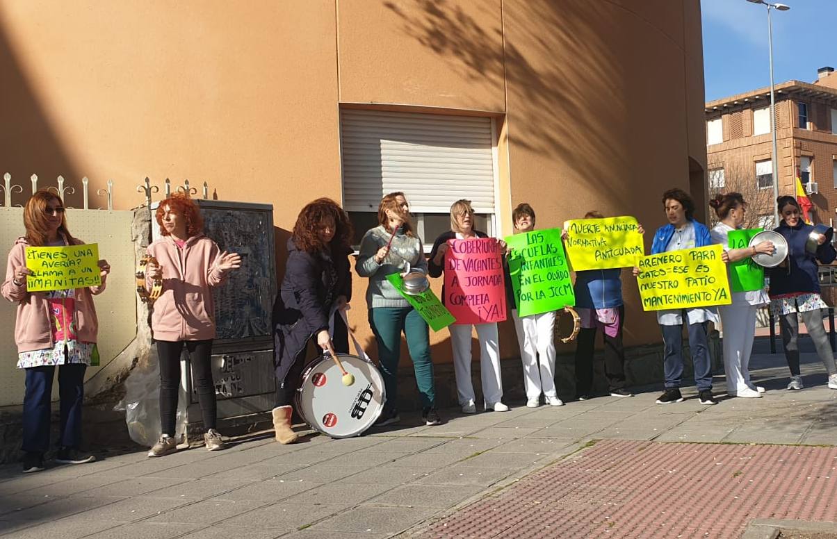 En Toledo, el personal de la Escuela de Educación Infantil «El Olivo» se ha congregado hoy frente a las instalaciones del centro. La protesta, organizada junto con responsables de UGT Servicios Públicos, busca visibilizar su descontento ante lo que consideran una preocupante tendencia a la externalización del servicio de mantenimiento en las escuelas infantiles de toda la región.